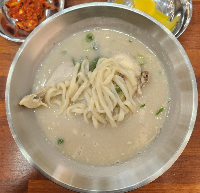우리는 "닭칼국수" 1개와 "닭 곰탕" 1개를 주문했습니다.