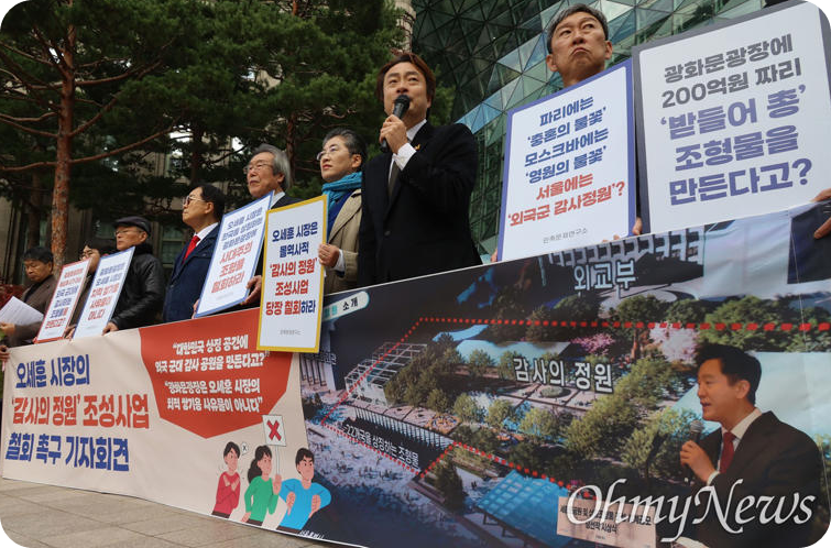 서울시의 ‘감사의 정원’ 조성을 강력히 반대했다.