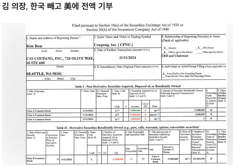 #Coupang, #BomSukKim, #StockDonation, #USCharity, #TaxDeduction, #CSR, #Korea, #Boycott, #IRS, #Governance,