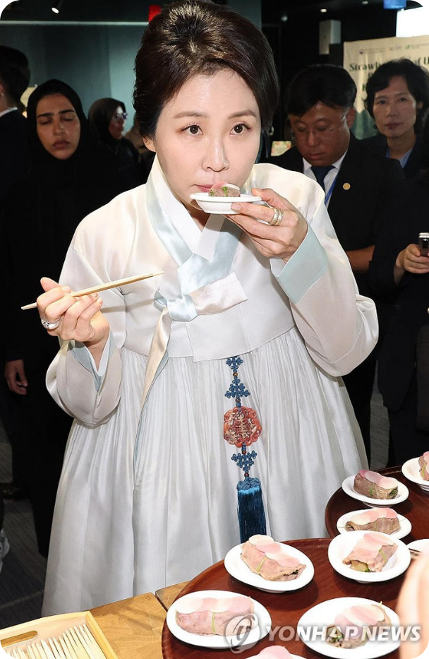 한복 차림 김혜경 여사, UAE에서 케이푸드 외교로 시선을 모으다
